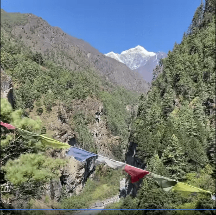 Yesterday (Wednesday October 27, 2021) we flew from Katmandu to Lukla. We had tea in Lula at Pasang Dava’s mother’s tea house and walked 3 hours just past Pakding to Konge Peak Guest ouse where we spent the night. I made friends with Tenzing, who was the lead for the rope fixing team up to camp 4 on Everest during the 2021 season and also the 1st woman Nepali helicopter pilot who has done several Heli rescues at camp 2.